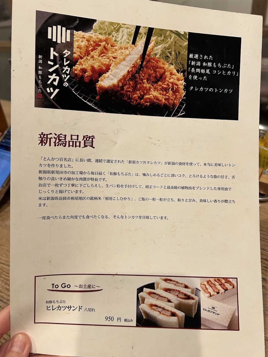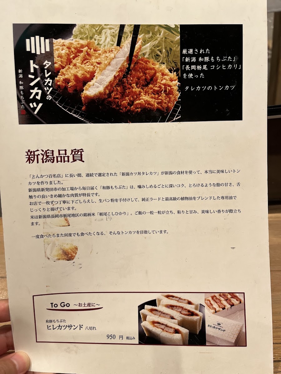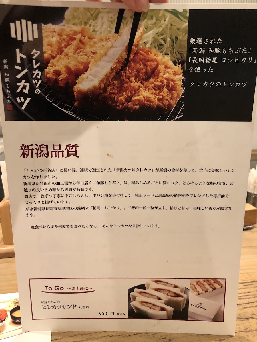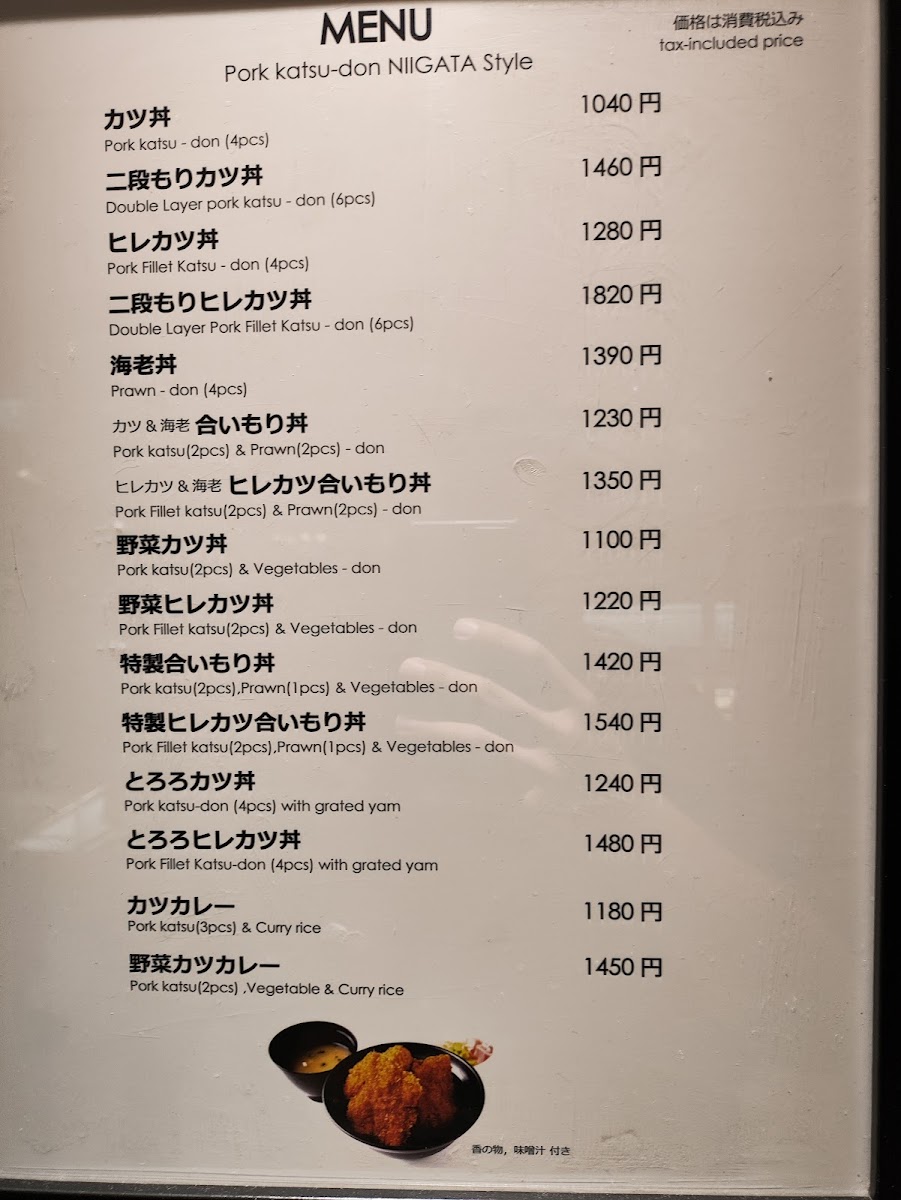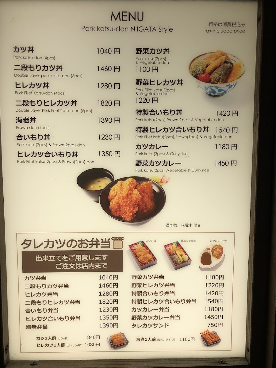 Niigata Katsudon Tarekatsu Shinsaibashiten Menu